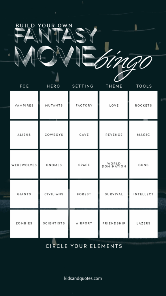 Halloween fantasy movie bingo