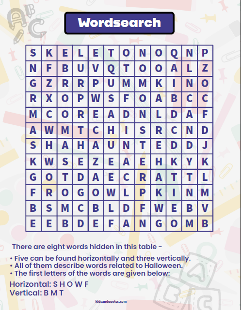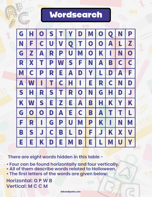 Halloween word search (a) – 12×12 Grid with hidden answer key
