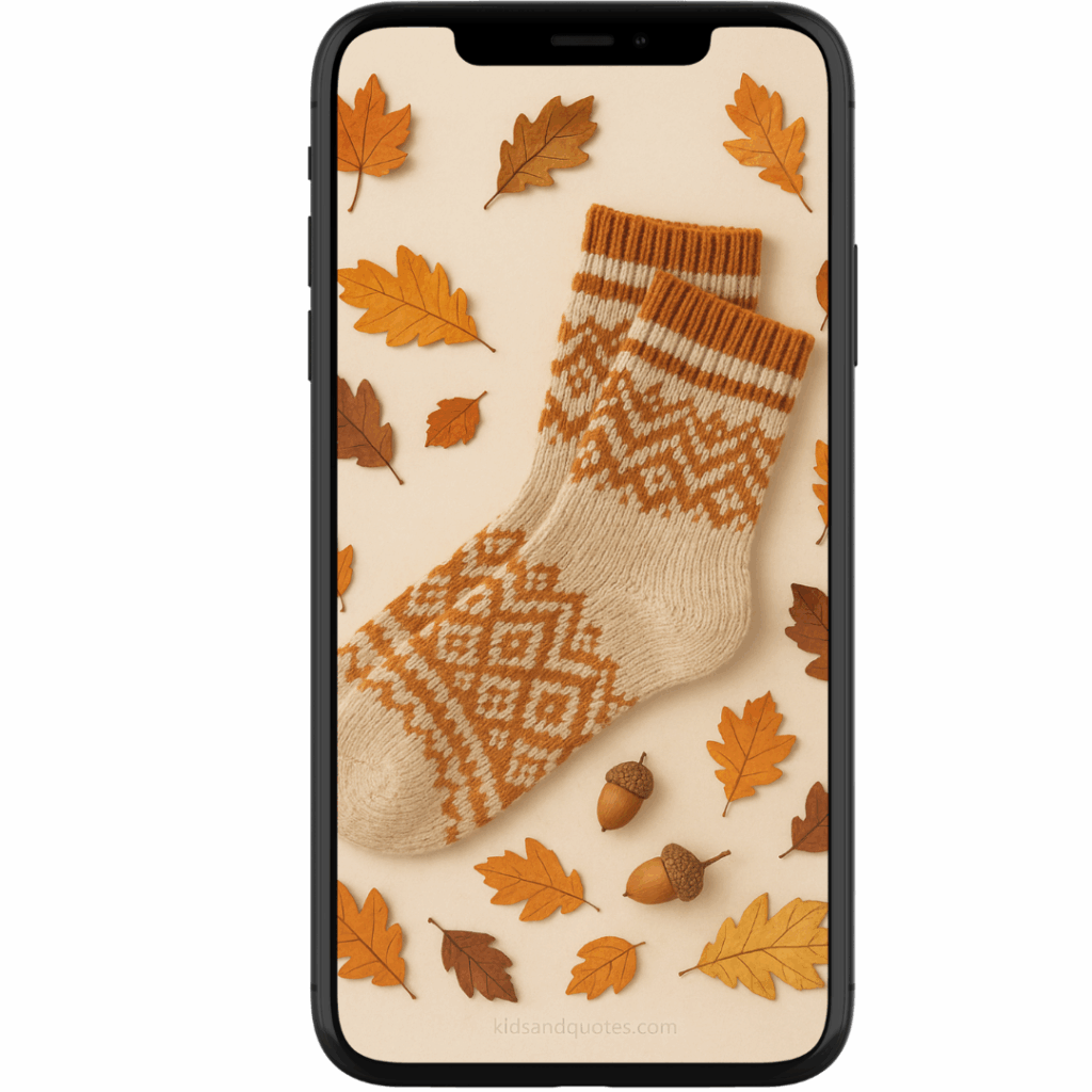 iPhone wallpaper - A cozy pair of woolen socks (patterned) lying among fallen leaves, gentle shadows, warm tones, neutral background.